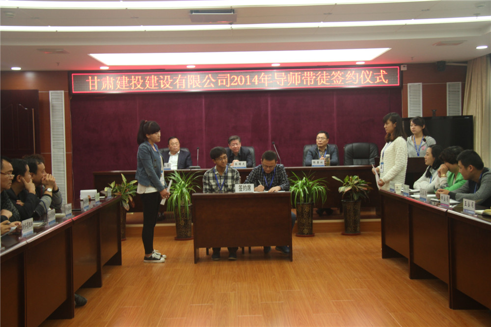 9月29日,建設公司隆重舉行2014年 “導師帶徒”簽約儀式。公司黨委書記、副總經理、機關各部室負責人,各基層單位團支部書記,導師帶徒活動簽約的師傅及徒弟參加了此次活動。此次活動是公司團委專門針對公司 “導師帶徒”人才培養體系舉行的。主要目的是通過簽訂導師帶徒協議,形成師徒關系,提高新員工的整體素質,加快新員工的人才的培養,不斷提升公司整體管理水平。
