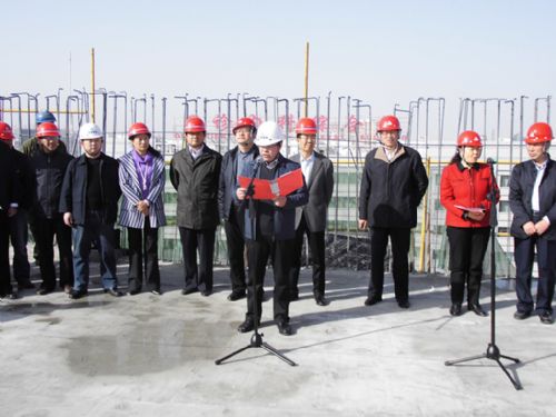 彩旗招展,爆竹聲聲。封頂儀式上,酒泉市建設局、酒泉市人民醫院、甘肅藍野建設監理有限公司等主要領導,以及建設公司黨委書記、紀委書記張國虎、五公司經理薛建才和項目部參建人員近70人參加了封頂儀式,共同見證了這一輝煌的時刻。建設公司張書記代表施工方發表了講話,指出:今天的封頂既是工程建設的一個里程碑,更是搞好后期建設的一個新起點,后期的裝飾裝修、工程安裝等施工任務還很繁重和艱巨。為此,我們要求項目部的全體施工人員,以“建精品工程,筑百年基業”為根本,以創優質工程為目標,繼續努力,為業主交上一份滿意的答卷,向酒泉市的醫療衛生事業做出我們應有的貢獻。